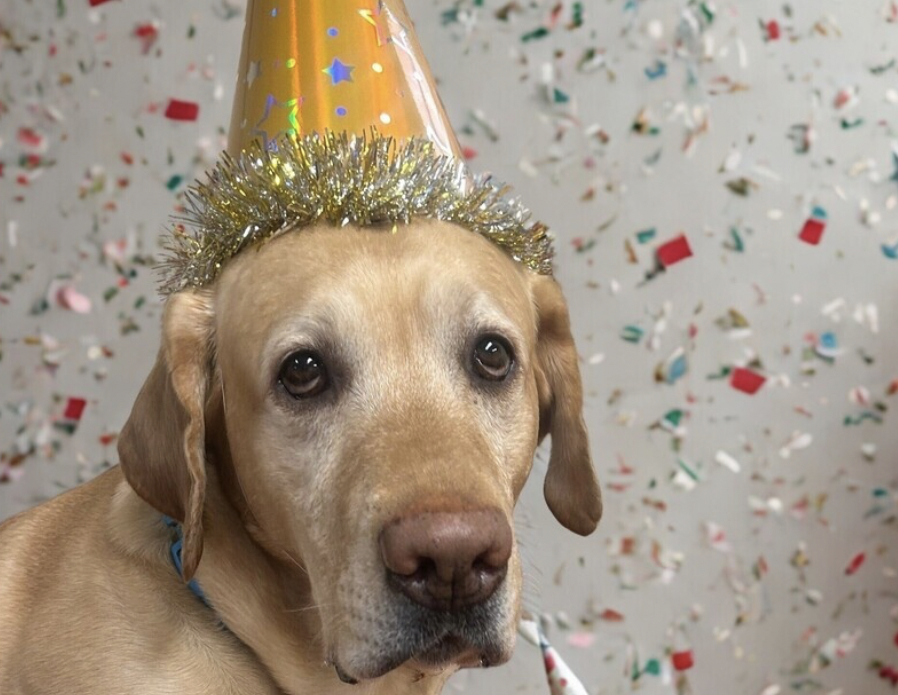 Last Friday, Mar. 27, was Myko “Mykonos” Frisiras’s fifth birthday (though he is around three at heart). Myko is an American Yellow Lab therapy dog who frequents campus with his owner Karie Frisiras, who is an Administrative Assistant for the Office of Diversity and Equity. Frisiras threw a birthday party for Myko in the MacVitte College Union lobby on his birthday, including a photobooth, cupcakes and other treats, and a large poster on which students wrote birthday wishes to Myko.