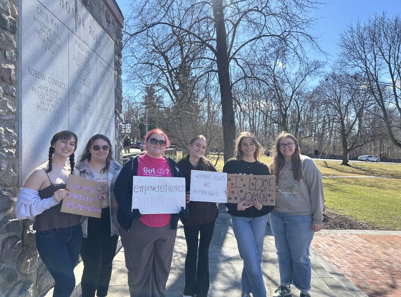 On Mar. 8, 2026 at 1 p.m. Peace Action Geneseo (PAG) hosted a Women’s March at the Veteran’s Memorial Park, located on the corner of 20A and Main Street. The event began with the president of PAG, Abigail Persons, a senior psychology major with a minor in human resources management, making a statement about the importance of gathering and commemorating International Women’s Day.
